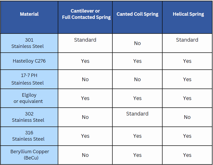 Canted Coil Spring has a very unique oval shape cross section that allows the spring to have a very flat spring force curve in a specific working deflection range.